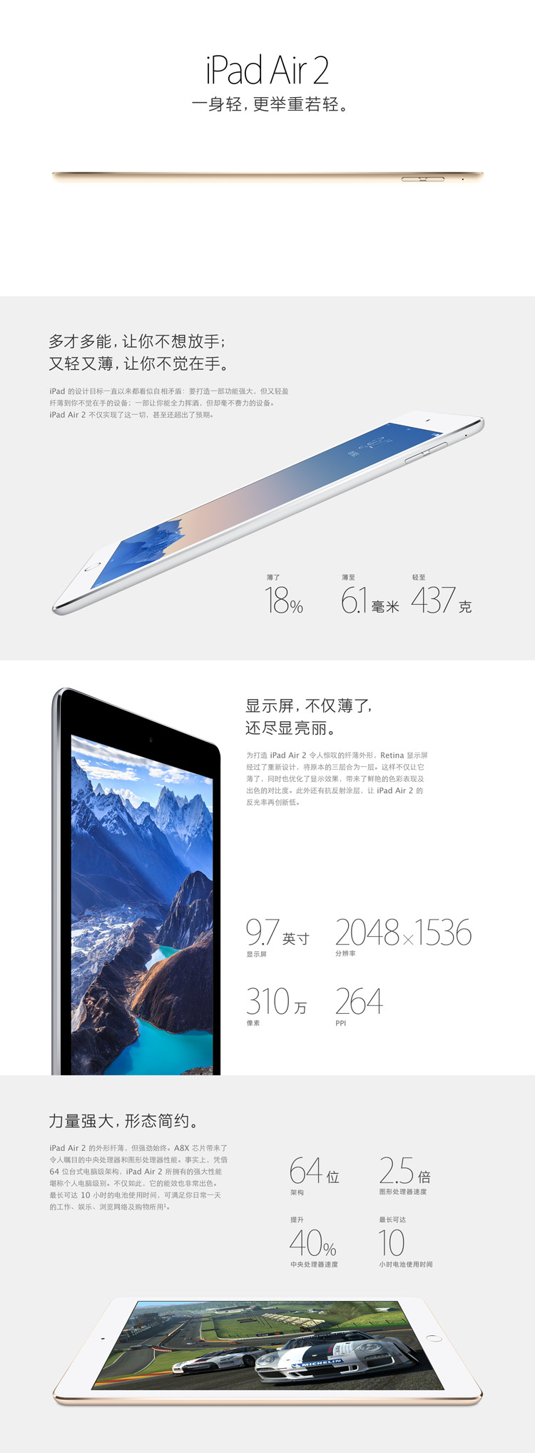 商品名称:Apple iPad Air 2 MH182CH/A (9.7英寸 64G WLAN 机型 金色)