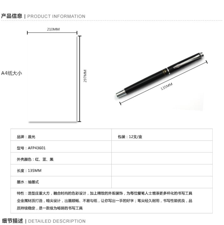商品名称:晨光(M&G) 43601企业订制 钢笔 男式女式商务办公签名弯头钢笔 颜色随机