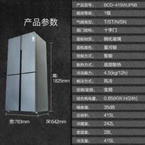 商品名称:美菱 BCD-415WUP9B 十字对开冰箱 星河银