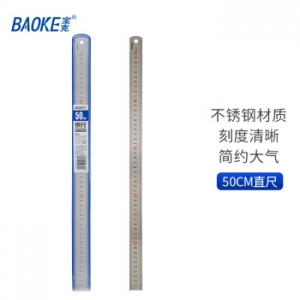 宝克(BAOKE)RU1950 不锈钢直尺加厚钢板刻度钢尺 50cm