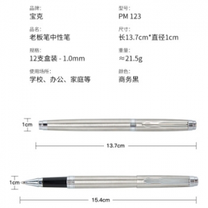商品名称:宝克(BAOKE)PM123 签名笔/纯金属商务中性笔/宝珠笔 银色1.0mm (计价单位:支)