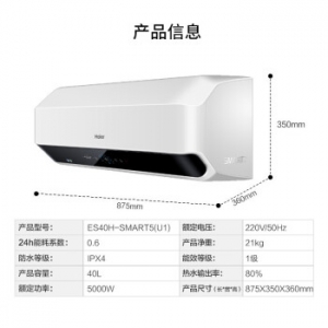 商品名称:海尔(Haier) 电热水器40升家用即热式3D速热 8/10倍增容 ES40H-SMART5(U1)
