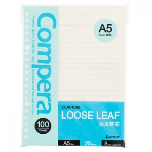 - 商品名称:齐心 CLA51008 20孔活页替芯 A5 100张 8mm横格 浅蓝
