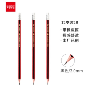 齐心 MP2023 六角木杆铅笔 (12支装) 抽条 带皮头 2B 黑色
