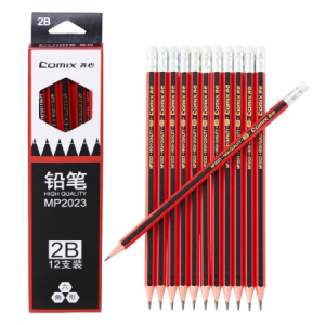 商品名称:齐心 MP2023 六角木杆铅笔 (12支装) 抽条 带皮头 2B 黑色