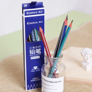 商品名称:齐心 MP2025 三角木杆铅笔 (12支装) 抽条 带皮头 2B 黑色
