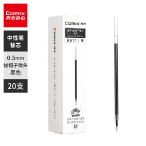 齐心 R917 速干拔帽子弹头替芯 0.5mm 黑色 20支/盒