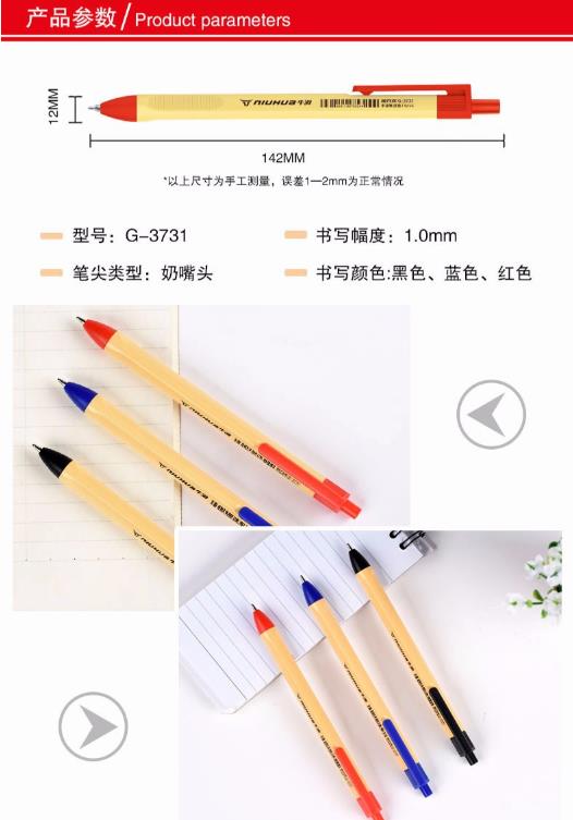 - 商品名称:金万年 G-3731 牛滑木色杆1.0奶嘴珠头RS04芯按压中油笔-黑色 (计价单位:支)