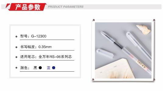 商品名称:金万年 G-12300 简约雾透明0.35全针管配RS06系列芯拔帽中性笔 蓝色 (计价单位:支)