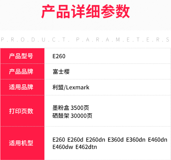 商品名称:富士樱 E260 硒鼓组件 专业版 适用利盟E260 E260d/dn E360d/dn E460dn/dw E462dtn E260X22G