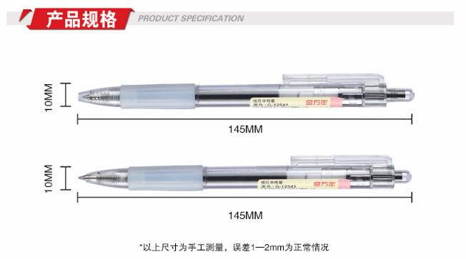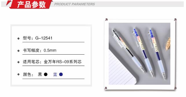 商品名称:金万年 G-12541 简约纯透明0.5mm子弹头配RS09系列芯按压中性笔 蓝色 (计价单位:支)