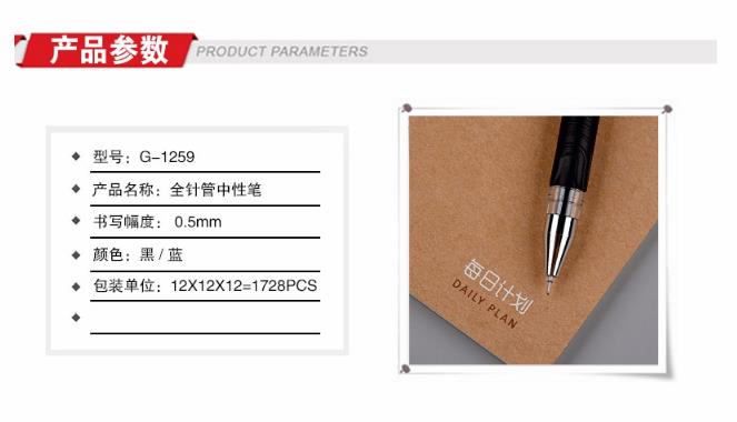 商品名称:金万年 G-1259 银盾0.5MM全针管配RS06系列芯拔帽中性笔-蓝色