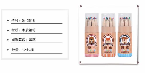 商品名称:金万年 G-2618 原木彩色铅笔88m短杆圆纸桶装12色木杆铅笔 (计价单位:筒)