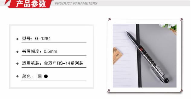 商品名称:金万年 G-1284 幻影0.5半针配RS14系列芯银夹拔帽中性笔-黑色