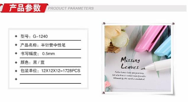 商品名称:金万年 G-1240 马卡龙色0.5半针管配RS07系列芯拔帽中性笔-黑