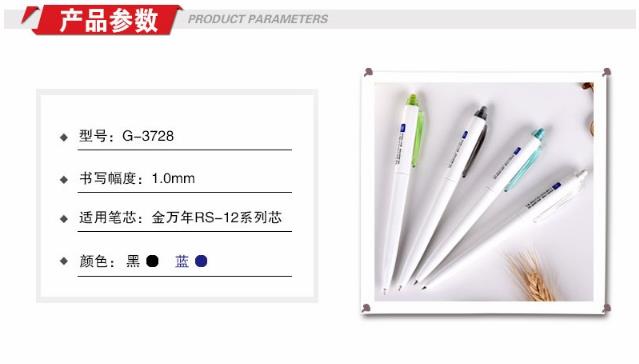 商品名称:金万年 G-3728 亮白素色0.5MM奶嘴珠头配RS12系列芯按压中油笔 黑色