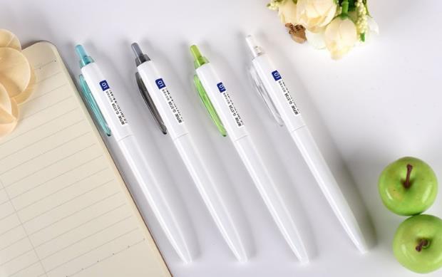 金万年 G-3728 亮白素色0.5MM奶嘴珠头配RS12系列芯按压中油笔 黑色