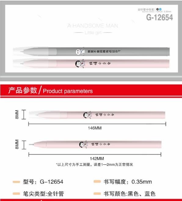 商品名称:金万年 G-12654 帅男少女0.35全针管配RS06芯拔帽中性笔-蓝色