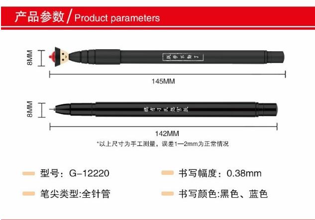 商品名称:金万年 G-12220 朕语录0.38全针管配RS06芯拔帽中性笔-黑色 12支/盒