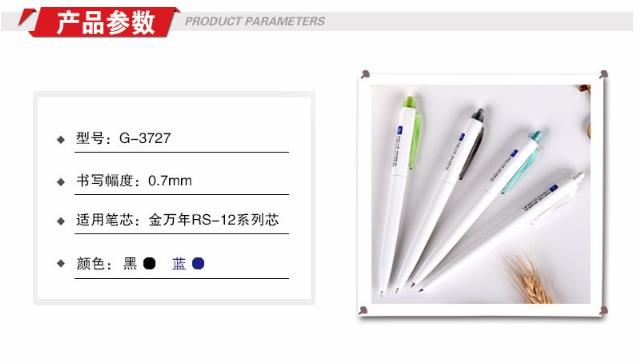 商品名称:金万年 G-3727 亮白素色0.7MM奶嘴珠头配RS12系列芯按压中油笔 蓝色