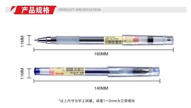 商品名称:金万年 G-11770 简约纯透明0.5mm子弹头配RS07系列芯拔帽中性笔 黑色