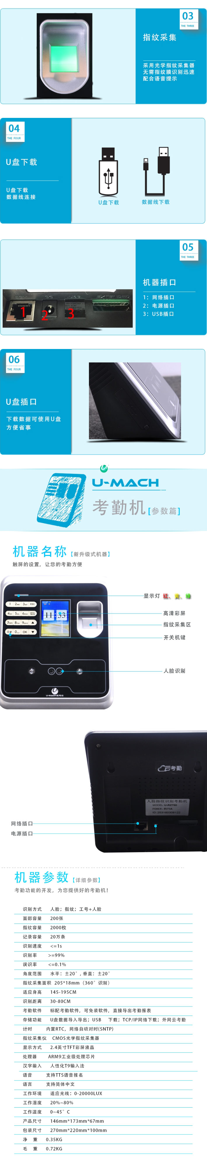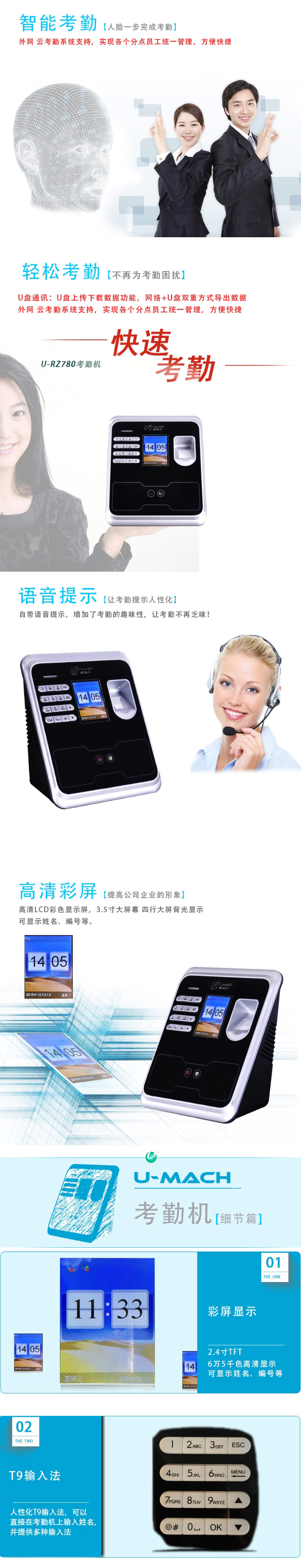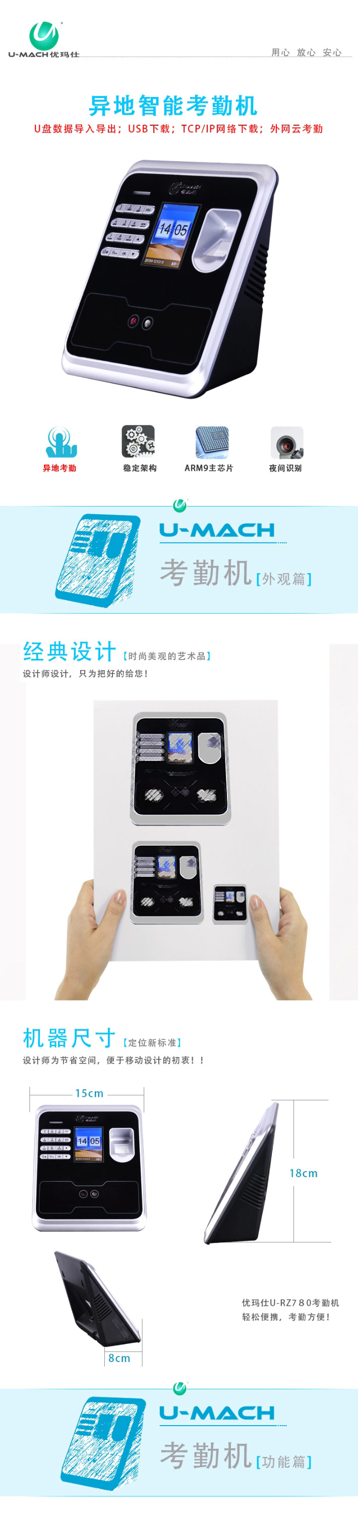 商品名称:优玛仕(U-MACH) U-RZ780 人脸指纹考勤机 黑色