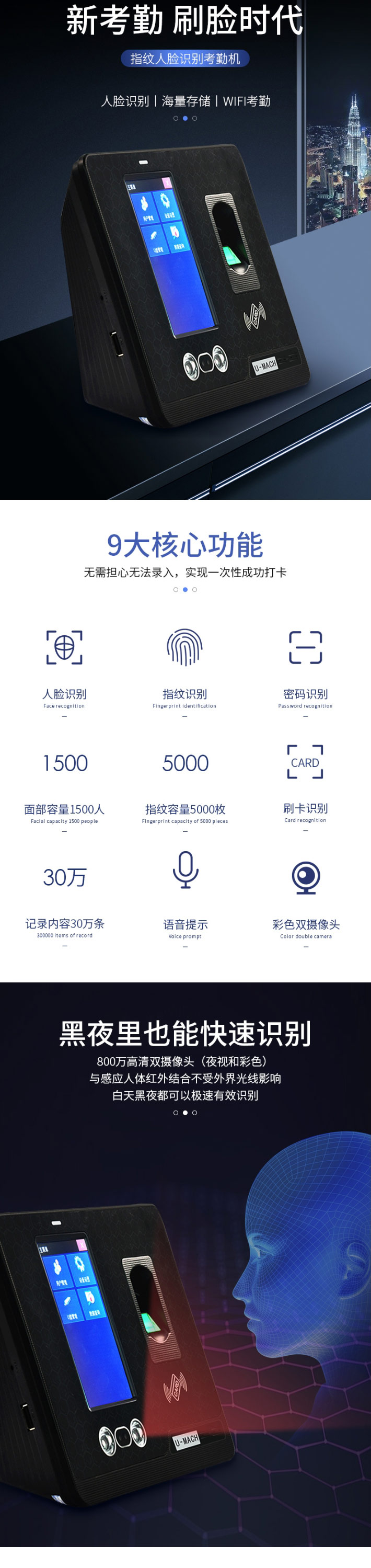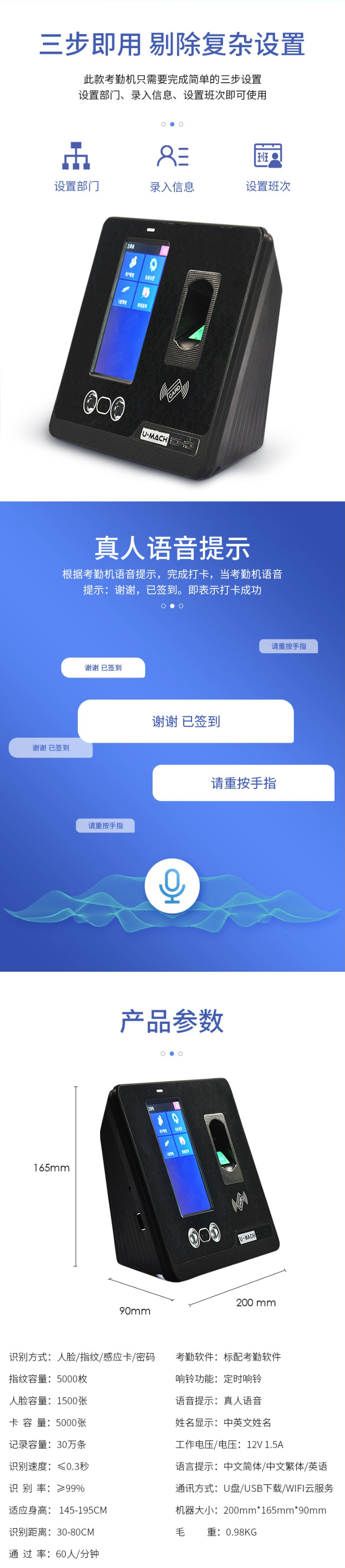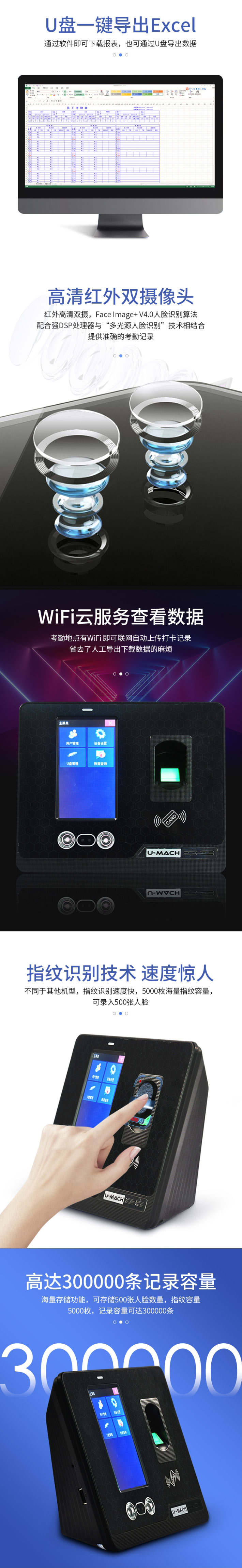 商品名称:优玛仕(U-MACH) 人脸指纹考勤机 U-RZ960 黑色