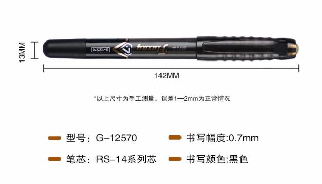 商品名称:金万年 G-12570 亮金透黑大容量0.7子弹头配RS14系列芯拔帽中性笔 12支/盒