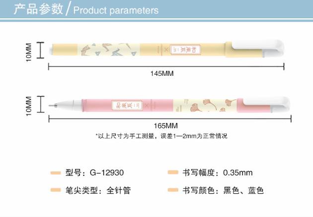 商品名称:金万年 G-12930 和风系细杆短盖0.35全针管配RS06芯拔帽中性笔-蓝色