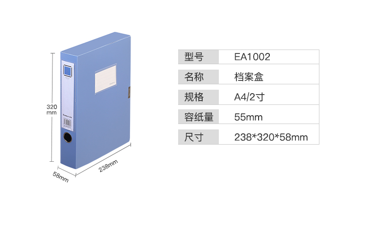 - 商品名称:齐心(Comix) EA1002 A4 粘扣档案盒 55mm 蓝色