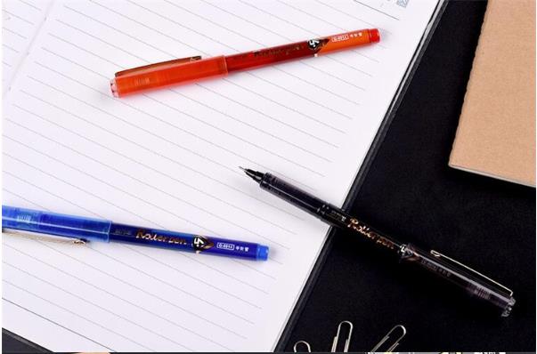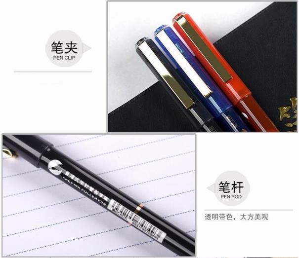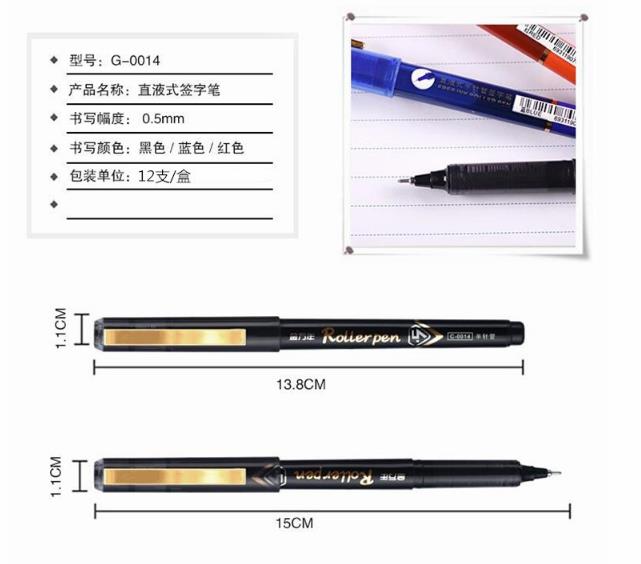 商品名称:金万年 G-0014 亮金夹直液式出墨0.5mm半针管拔帽签字笔-蓝色 12支/盒