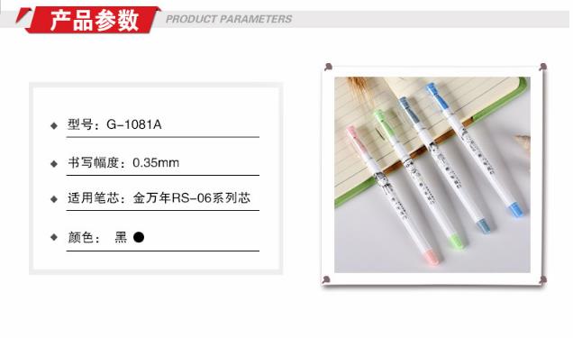 商品名称:金万年 中性笔0.35mm学生系列芯学生水笔签字笔0.35中性笔G-1081A 12支装 黑色