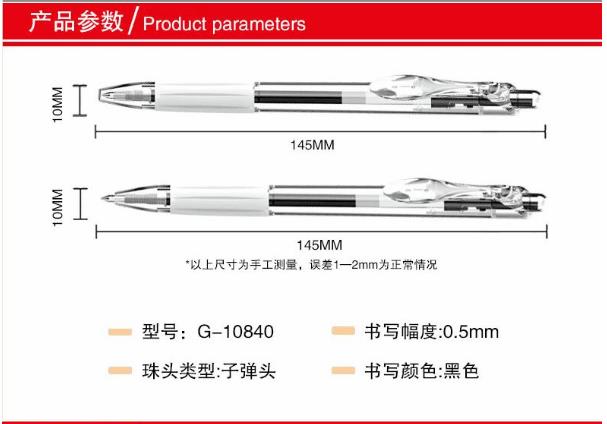 商品名称:金万年 G-10840 秒干椭圆夹0.5子弹头配RS09芯按压中性笔-黑色 (计价单位:支)