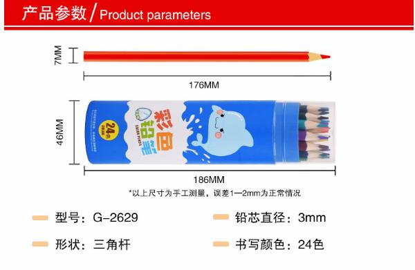 商品名称:金万年 G-2629 跳跳海豚三角木杆圆纸筒24色彩色铅笔-多颜色 (计价单位:筒)