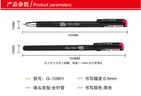 商品名称:金万年 G-10901 优100橡胶漆杆盖0.5全针管配RS06芯拔帽中性笔-