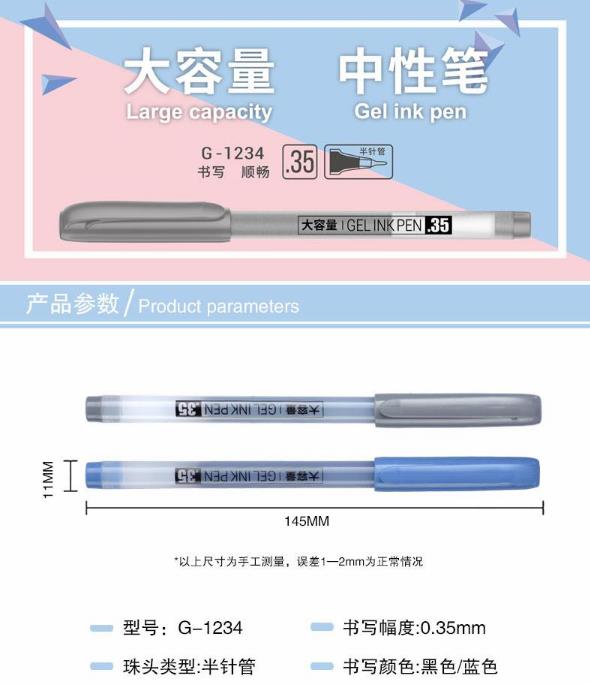 商品名称:金万年 G-1234 大容量一次性灌墨0.35mm半针管中性笔-黑色 (计价单位:支)