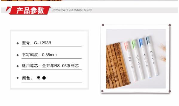 商品名称:金万年 G-1293B 那一年细杆0.35mm配RS06系列芯拔帽中性笔-黑色 (计价单位:支)