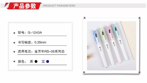 商品名称:金万年 G-1243A 简约素白淡色夹0.35mm配RS06系列芯拔帽中性笔 (计价单位:支)