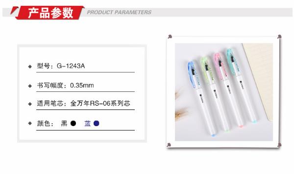 金万年 G-1243A 简约素白淡色夹0.35mm配RS06系列芯拔帽中性笔-黑 (计价单位:支)