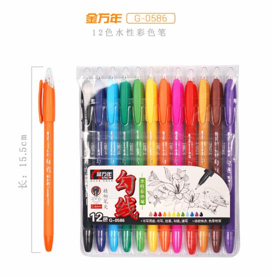 金万年 G-0586 精细笔头0.4mm细划12色套装勾线笔-多颜色