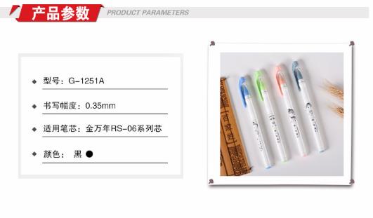 商品名称:金万年 G-1251A 那一年长笔夹0.35mm配RS06系列芯拔帽中性笔-黑 (计价单位:支)