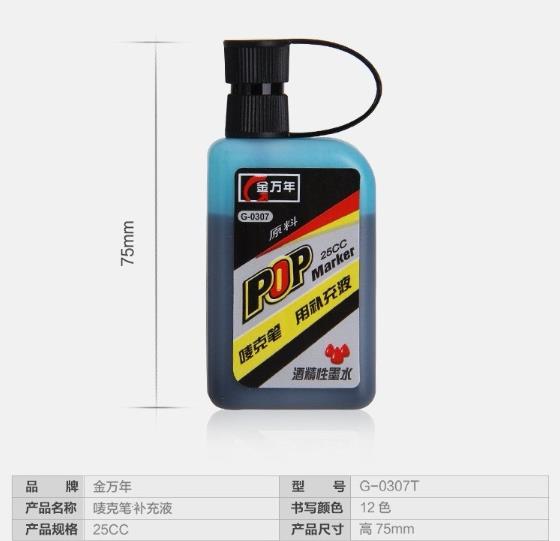 商品名称:金万年 G-0307T POP唛克笔专用补充液12色套装记号笔墨水-多颜