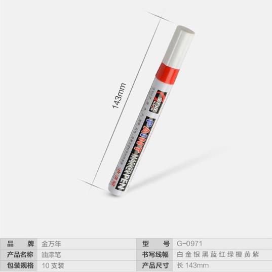 商品名称:金万年 G-0971T 优能大铝管10色套装油漆笔-多颜色