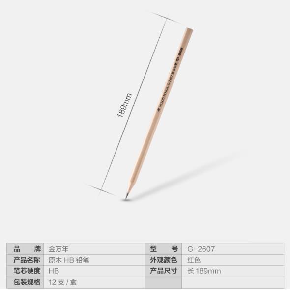 商品名称:金万年 G-2607 HB(HZDZ) HB原木无漆毒木杆铅笔-无