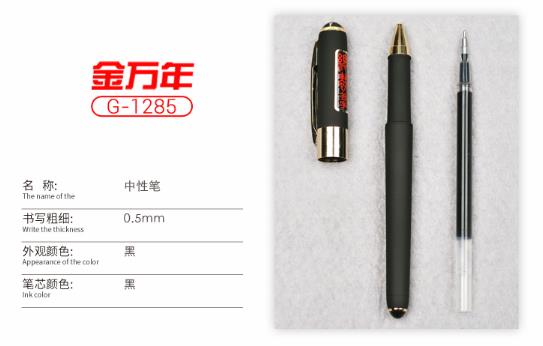 商品名称:金万年 G-1285 总裁签名笔0.5半针大容量配RS14系列芯中性笔 黑色