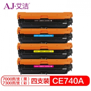 - 商品名称:艾洁 CE740A硒鼓四色套装商务版 黑红黄蓝各一支 适用惠普HP 5225 5225n 5225d CE740A 彩色激光打印机
