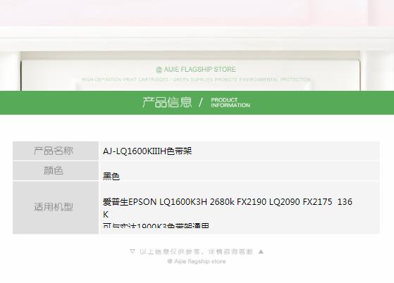 商品名称:艾洁 LQ1600KIIIH 色带架黑色 适用爱普生EPSON LQ1600K3H LQ2090C FX2190 LQ136KW S015336 实达1900K3