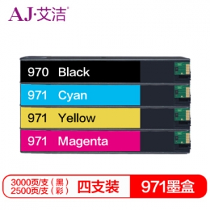 艾洁 惠普970墨盒四色套装黑蓝黄红CN621AA 适用HP X451dn X451dw X551dw X476dn X476dw X576dw