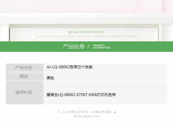 商品名称:艾洁 LQ-680K2 色带芯十支装 适用爱普生LQ-680K2 675KT 690k打印机色带