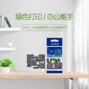 艾洁 标签带12mm标签纸色带 PL-531 适用兄弟标签机色带12mm蓝底黑字 TZe-531